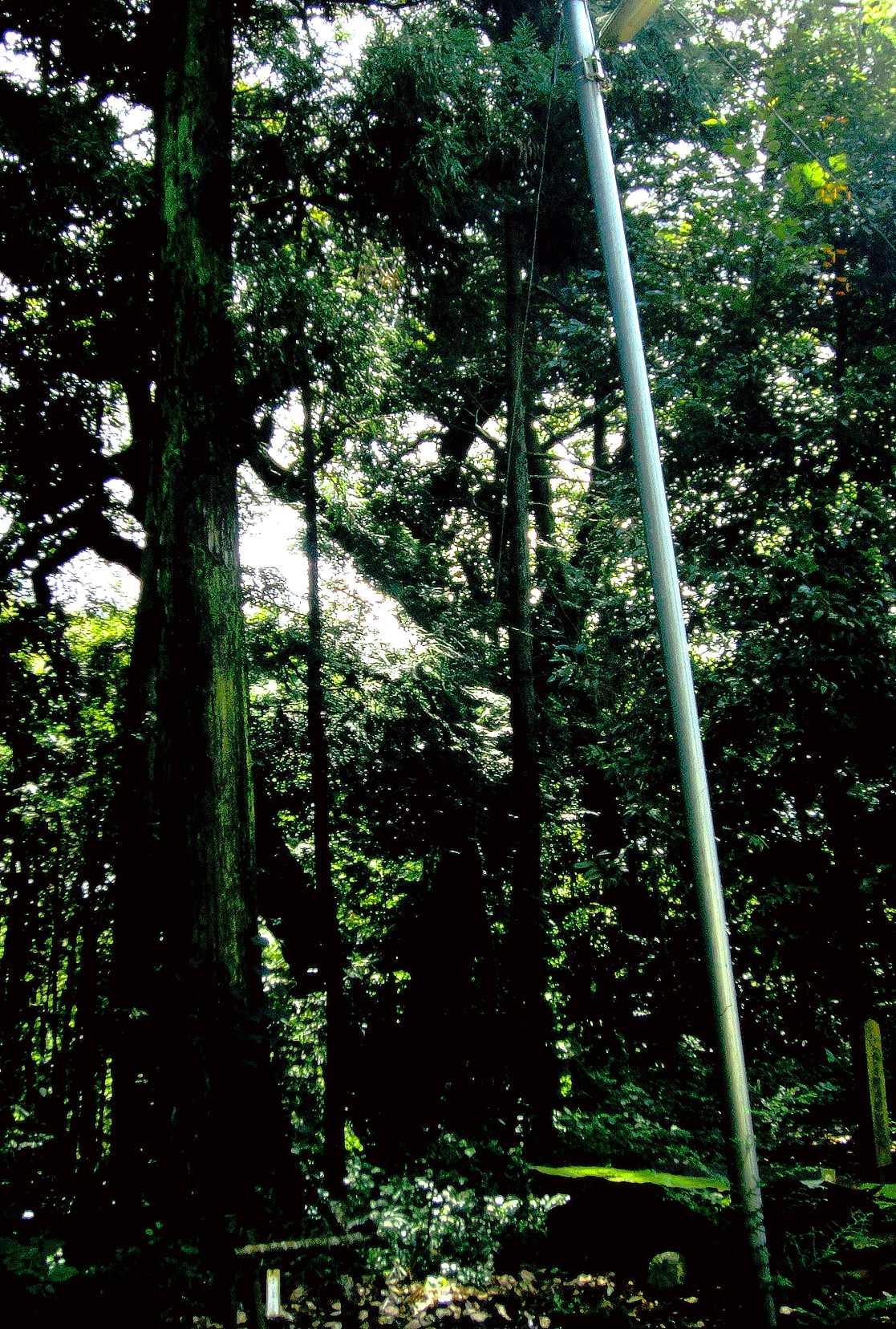 社殿に向かって左手奥の植林の中にある。枝張りもよく、樹勢もある。